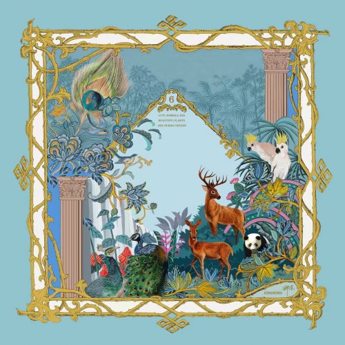 又到了秋冬季节,全球各大品牌都相继推出了和艺术家合作的色彩各异的丝巾款式。和多家品牌合作多年的国际知名艺术家邢东先生今年特别创作了邢东签名版的 “美丽的大自然—保护生态环境”为主题的符合国际时尚艺术风格的丝巾作品,这幅作品结合复古图案,将森林和优雅可爱的动物入画,呼吁人们关心爱护赖以生存的大自然生态环境。