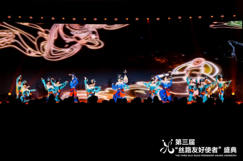 当晚,多位艺术家为盛典献上精彩演出。库车龟兹舞蹈团用一支《龟兹乐舞》为盛典开场,以优美动人的民族舞蹈艺术再现古老而繁盛的丝路文化。国乐大师方锦龙、著名歌唱家王铁刚、上海京剧院青年演员韩宜珈也分别为盛典献上了经典曲目。