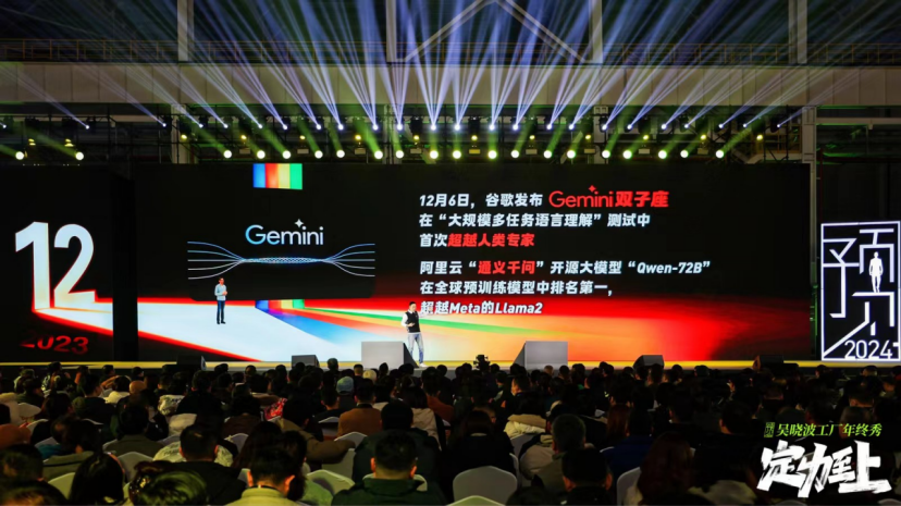 ChatGPT上线的第四个月,中国的百度在3月16日发布了自己的大模型——文心一言。截至吴晓波年终秀演讲时,文心一言一年的调用量已是全中国其他200多个大模型调用量的总和。所以在科技领域里,先行一天,早走一步,有多么地重要。