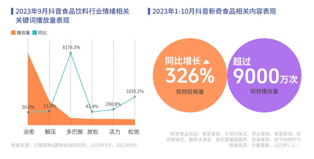 在物质丰足的今天,食品饮料能为我们提供的已经不再仅是食用价值,还有情绪价值。在抖音平台,新奇特的食品饮料表现抢眼,各种奇趣搭配满足用户的猎奇心。