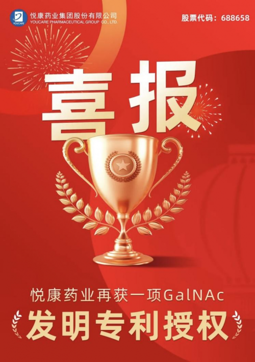 这项专利是悦康药业GalNAc递送平台继前期《新型GalNAC化合物及其硫代寡核苷酸缀合物和偶联方法》专利被授权之后的又一重要突破,也是悦康药业在核酸药物递送领域获得的第10项发明专利授权,为公司在核酸药物领域的研发提供有力的技术支持和保障。