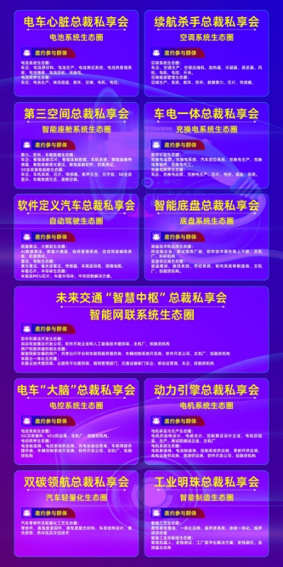 新能源汽车供应链企业总裁私享会正在火热报名中!不到3天时间,51位董事长、64位CEO、33位总经理、28位直接版块负责人共176位决策人确认到场,覆盖智能网联、自动驾驶、智能座舱、电机、电控、电池、充换电等11个板块,各板块总裁私享会名额仅限25位。2月28日,300+企业总裁及决策人共赴北京拓人脉、寻商机、解困惑!