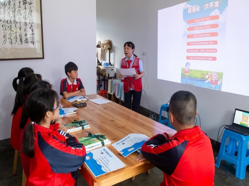 图为“香溢”志愿者在住龙驿站给孩子们教授防溺水相关知识