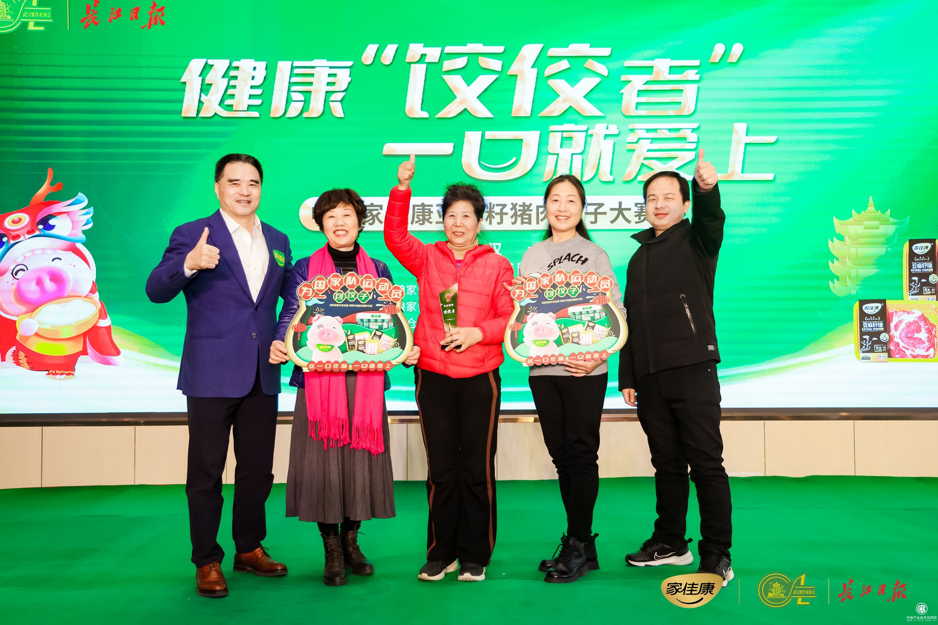 经过评委们的仔细品尝、认真评审,综合肉馅整体口感、肉香激发程度、味道融合程度等多维度打分,最终“不可馅量队”凭借猪肉白菜、“动人心馅队”凭借猪肉韭菜、“从不露馅队”凭借猪肉芹菜、“千饺百态队”凭借猪肉香菇、“饺小玲珑队”凭借猪肉白萝卜,分别斩获“饺佼者”称号与家佳康亚麻籽猪肉武汉直营店肉券大奖。友谊赛道的渠道商代表队也以不俗的调馅、包饺子实力,荣获经典味道奖、荆楚味道奖和守护味道奖荣誉奖励。