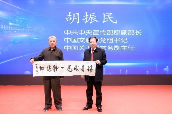 为祝贺常孝元宇宙《神由都城》发布会的顺利召开,中共中央宣传部原副部长、中国文联原党组书记、中国关工委常务副主任胡振民先生为常孝元宇宙赠送墨宝,以示祝福。中华孝道园创始人、常孝股份董事局主席、神由之星董事长蒋建名先生接受墨宝,合影留念。胡部长赠送的墨宝是“让孝成为一种信仰”,这是中华孝道园与常孝股份二十多年来提出的历史使命,常孝股份将砥砺前行,不忘使命。