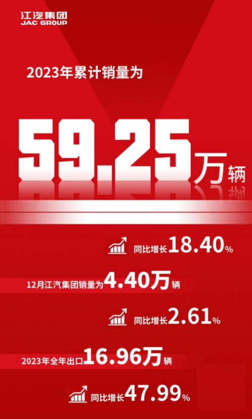 中国已经完成从“汽车制造大国”到“汽车制造强国”的转变了吗?毫无疑问,自主品牌在国内市场的强势表现已经印证了这一观点,但如果想要海外合资大厂输的心服口服,留给中国车企的就只有一条路——出海,在竞争对手的地盘打败他们。事实上,在过去的一年里,自主品牌也确实做到了这一点。2023年,我国汽车出口延续强势增长特征,首次超越日本,成为全球最大汽车出口国。新年伊始,以江淮汽车为代表的一众自主品牌,纷纷亮出了自己的“成绩单”。2024年1月5日,江淮汽车发布了《安徽江淮汽车集团股份有限公司2023年12月产、销快报》,数据显示,2023年江淮汽车全年累计出口16.96万辆,同比增长达到47.99%;2023全年累计销量59.25万辆,同比增长18.40%!
