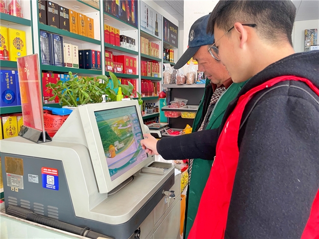 图为安吉县烟草专卖局青年党员驻点“示范终端”开展智慧经营指导活动。张阿岚摄