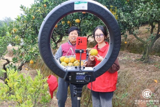 图为志愿者为通过直播介绍当地蜜桔