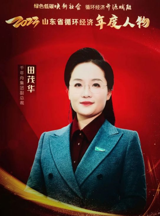 2024年1月17日,由山东省发展和改革委员会、山东省工业和信息化厅、山东省生态环境厅指导,山东省循环经济协会主办,山东广播电视台协办的2023山东省循环经济年度盛典在山东广播电视台举行。千年舟集团副总裁田茂华受邀出席此次盛典,凭借突出的贡献,获得“2023山东省循环经济年度人物”荣誉。
