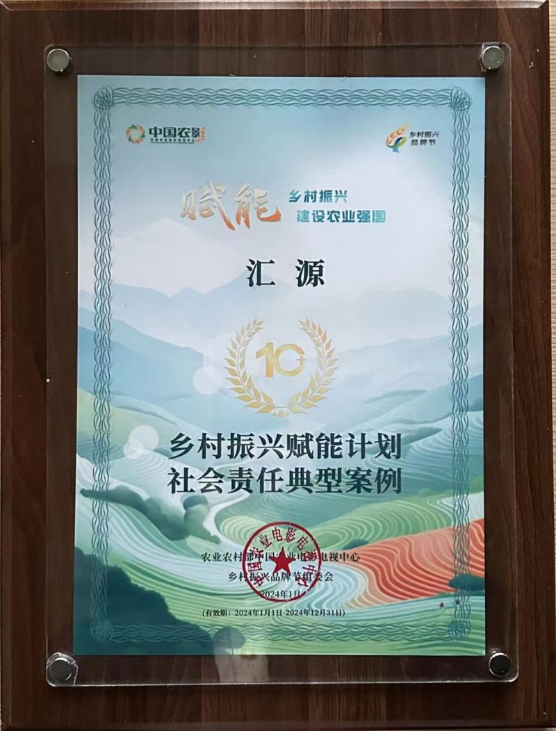 赋能乡村振兴,建设农业强国。近日,由中国农业电影电视中心、乡村振兴品牌节组委会主办的乡村振兴品牌节年度荣耀盛典在河北省怀来县举行,汇源凭借汇源沙棘发展成果及案例,在活动中荣获“乡村振兴赋能计划社会责任典型案例”,与京东、中国电信、腾讯等品牌共同上榜。
