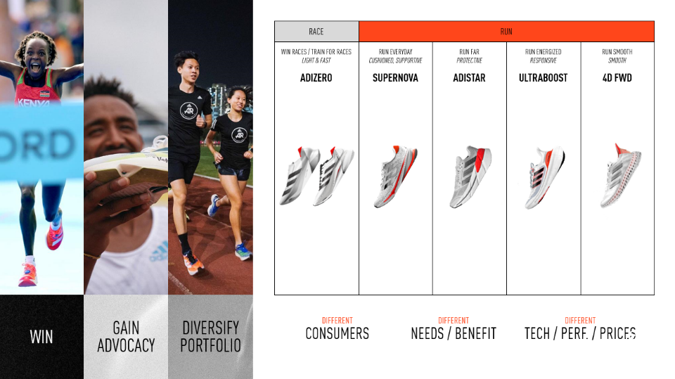 除了持续助力马拉松跑者夺冠,阿迪达斯在跑步科技的“马拉松”比赛中,力争成为“领跑者”。经过几十年的发展,阿迪达斯以功能性为导向,打造出了ADIZERO、SUPERNOVA、ADISTAR、ULTRABOOST、4DFWD等科技创新平台,形成了丰富的跑鞋产品矩阵的同时,还会不断参与到跑步这项运动的方方面面,和跑者还有市场一起推动跑步这项运动的发展。