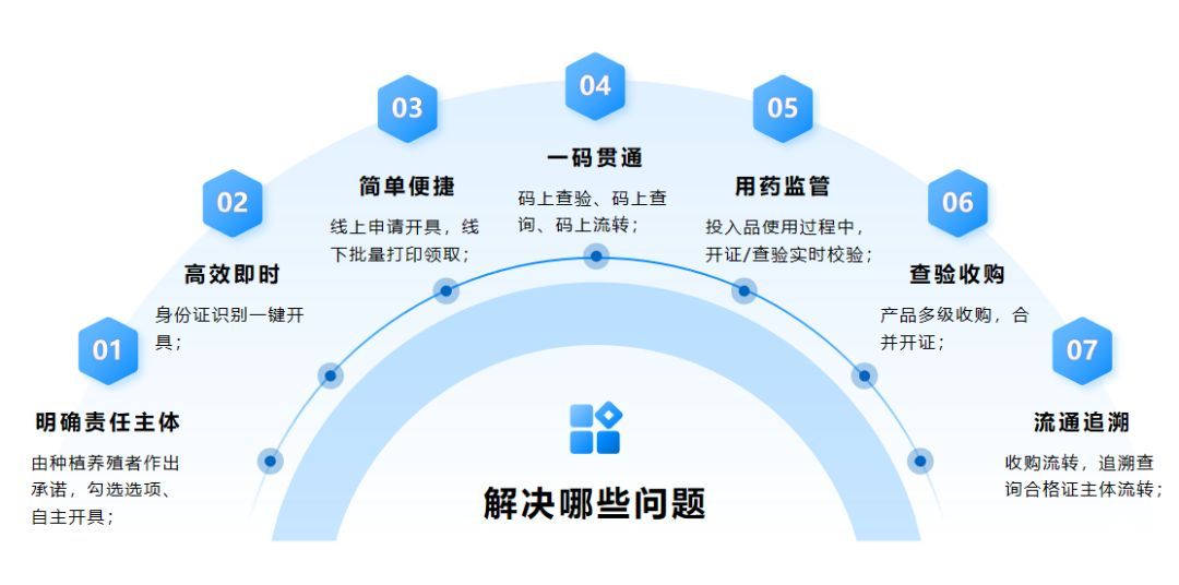 一方面优化了原来农户申领,农业局审批,网格员发放的复杂流程,另一方面通过全农码、省农码一码贯通,收购方可使用配套合格证小程序一键扫码查验合格证,完成农产品交易环节的合格证主体流转;
