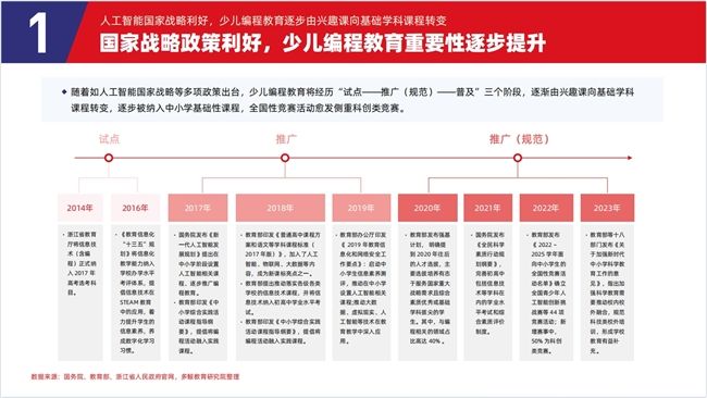 国家政策持续利好,AI技术发展为少儿编程教育提效增趣