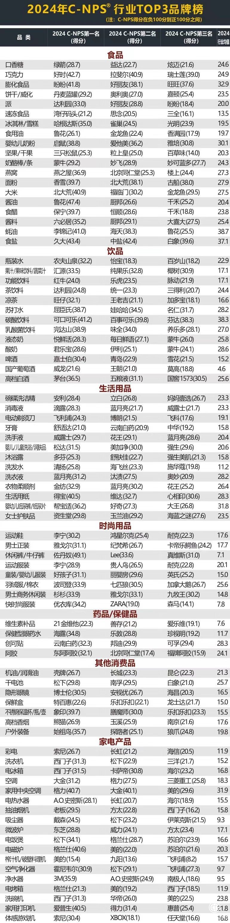 2024年C-NPS调查区域覆盖全国100+城市,调查对象为15岁到64岁之间的常住居民,并根据性别、年龄、收入进行随机抽样,总样本数量为2659000多个,采用线上调研的方式完成,覆盖163个细分行业,涉及被评价主流品牌10150余个。(尚文)