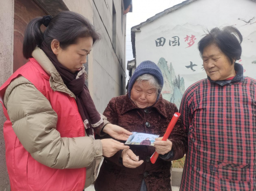 冬至这天,“香溢”志愿者来到儒岙镇上里村大礼堂,刚好村里也在为村民分发冬至果,志愿者提前和驻村干部取得联系,并在这天上午驻扎在大礼堂,为村里的留守老人拍一张照片。