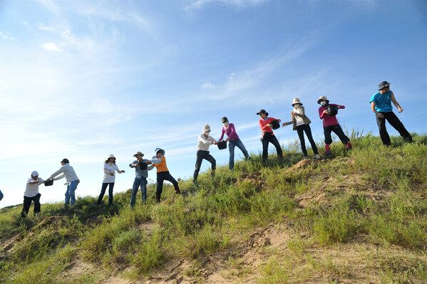 对"绿化网络"理事、内蒙古办事处绿化地管理部部长张爱伟来说,种树已经成为人生中重要的一部分。"看着自己种下树一年年长高,现在有家有娃了,家人们也一起加入了环保事业。"妻子乌仁塔娜一直陪着他参与绿化活动,出于热爱也加入"绿化网络",如今他们还会带着3岁的女儿去苗圃挑选松树苗,和来自五湖四海的志愿者们一起在沙漠里亲手种下小树苗,为家乡添绿。