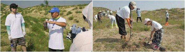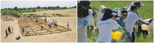 1998年,富士胶片开启沙漠绿化行动,志愿者们从日本远赴内蒙古恩格贝,与NGO组织"绿化网络"一起投入到退沙还林的事业中。2006年,富士胶片(中国)加入这一行动,志愿者们开始在科尔沁沙地植树,如今累积植树52520棵,绿化沙地面积510亩。