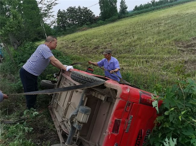 这并不是遇上的第一例交通事故,早在5月16日,一辆三轮车侧翻在一个乡间小道旁的沟渠中,当阳市烟草专卖局的送车组人员们发现及时,奋不顾身,迅速展开救援,用实际行动践行着责任与担当,及时将倾覆车辆拖出水渠,避免了事故的再次扩大。