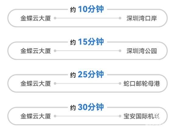 飞机、游轮、车流、地铁站,车马水龙人来人往,驱动着这座城市向前。商务所需的出行方式,都已经圈定在金蝶云大厦的半小时出行圈内。深圳主干道沙河西路、滨海大道、深南大道交汇,驾车上下班、商务出行一路畅通。10 分钟直达深圳湾口岸,25分钟登上蛇口邮轮母港,半小时内直抵宝安国际机场。从这里出发,触及世界的精彩。