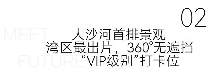 站在大厦高处往外看,360°无遮挡的湾区全景,一眼尽览!视线所及处,可见大南山一蛇口一深圳湾滨海休闲带、大沙河一塘朗山一阳台山的生态远景,43.7公里世界级活力海岸线蜿蜒向前,独瞰山、海、河、公园、高尔夫五重生态秘境,悦享都市罕有的自然环抱之感。
