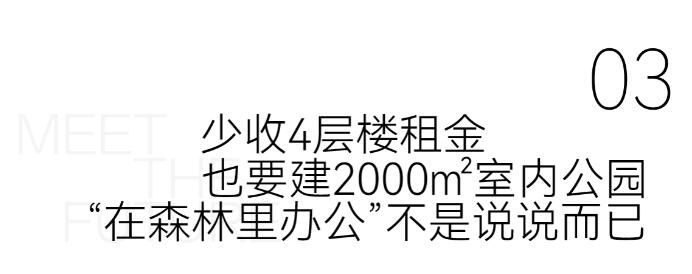 “人应该待在没有天花板的地方。”闲暇时刻,员工可漫步于此,于这片办公生态“森林”间,舒展身心、健身畅游,令流动的创新思维,在园区落地生根。