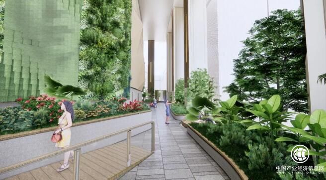 当你需要一杯咖啡时,乘坐电梯直达公园,等待的间隙,漫步于植物丛中,闻着草本清香,驱走一部分疲惫感。