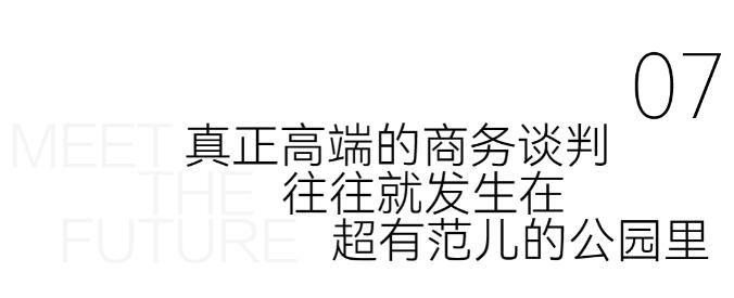 在这里,高端商务谈判没有按部就班的流程,可以先玩玩攀岩,逛逛公园,坐下来喝喝咖啡、聊聊项目,双方信任到位了,资源匹配上了,建立合作就是水到渠成的事!