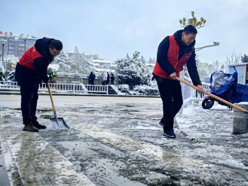 尽管寒风凛冽,但全体人员斗志昂扬,铁锹翻飞、扫帚舞动,志愿者们或三五组队,或两人协力,或一字排开协同推进。经过1小时的持续奋战,道路两旁及铁索桥上的积雪厚冰已清扫得干干净净,为往来群众清扫出一条干净、整洁、畅通的安全通道,用实际行动努力破解极端天气抛出的“民生考题”,向辖区居民传递了冬日里的关怀与温暖。
