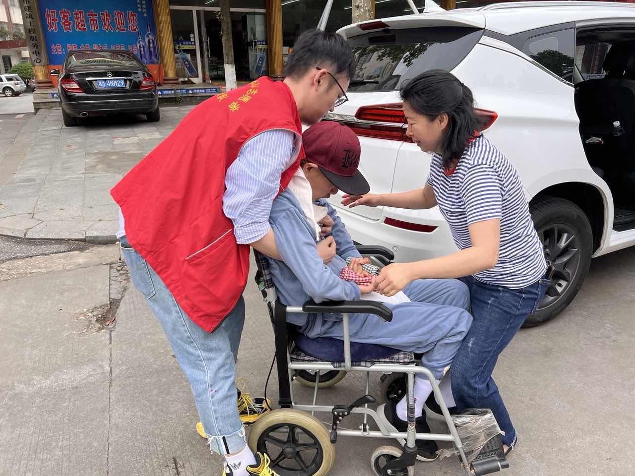 (图为上门服务队帮助重病职工前往医院开展康复治疗)