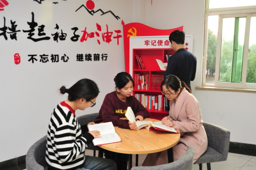 图为德清烟草支部党员在红色书屋内阅读交流
