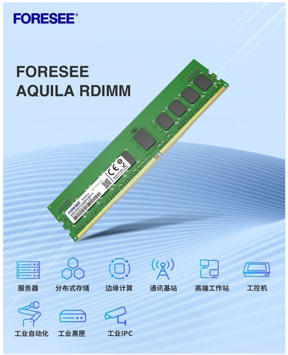 目前,FORESEE AQUILA RDIMM已开始全面量产,广泛应用于服务器、超级计算机、数据中心、高性能计算机等应用领域。其产品的稳定性、高性能和低延迟等特点,满足了各类客户的需求,为客户的业务发展提供了更出色的内存解决方案。