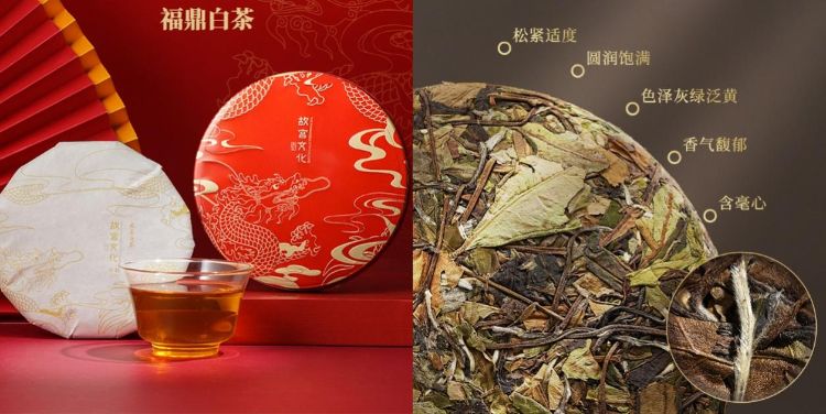 故宫文化推出了一款名为龙腾盛世的福鼎白茶,灵感来源于故宫博物馆藏红地黄龙纹盖碗,经典行龙元素,红色为底,与金相呼应。以茶会友,是馈赠的上佳之选。