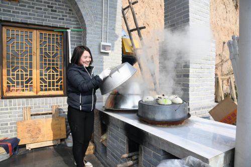 腊月二十,闻喜县薛店镇北张村民俗园人流如织,游客在欣赏民俗文艺节目的同时,沉浸式体验剪纸、花馍、书法等非遗项目,切身感受传统文化魅力。