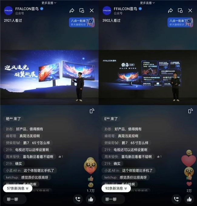 2024年伊始,科技圈热闹非凡。华为、小米等大厂纷纷召开新品发布会,展示自家最新科技成果,打响了开年第一枪。然而,在这股“高大上”的发布会潮流中,FFALCON雷鸟却选择了一条不同寻常的路,没有炫目的灯光,没有豪华的排场,就在直播间里以「ACE计划·新征程」为主题,像和老朋友聊天一样,真诚地分享品牌故事和新品亮点。这种简单而直接的方式,或许在外观上不够华丽,但却更能打动人心。