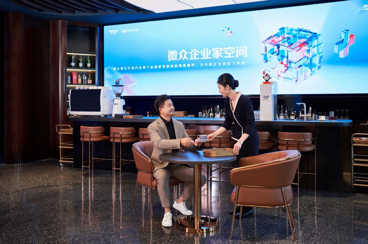 作为数字银行服务企业的窗口之一,微众企业家空间是真正为企业家商旅出行而设的贵宾厅,贵宾厅专属通道、mini吧轻食酒水、全流程贴心候机及送机服务等,迎接去往南、赶往北的企业家,为广大企业家带来有温度的服务。同时,微众企业家空间也是让企业家做主角的贵宾厅,不仅为企业家提供互相交流的场所,还设置企业专属广告位,通过3D建模、VR等技术手段展示企业客户品牌形象及产品特色,为其精准链接B端客群,更在空间设计中为中小微企业客户提供大量共建机会,让企业在参与感倍增的同时,也能商机倍增。