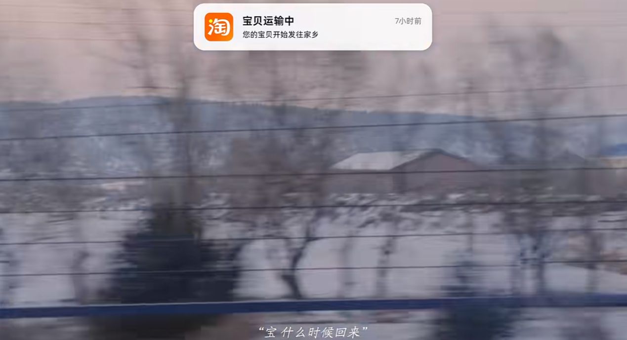 2024年,作为史上最长春节假期的一年,每一个在外工作、求学的人,都比以往更期待早日回家,与许久未见的家人团聚。“无论几岁,无论在外面是谁,回到家都是宝贝。”这句文案,来自淘宝春节短片《宝贝收到了》。短片中提到:“每个归乡的游子,都是等待被签收的宝贝。”一句简单的比照,用质朴动人的笔触,描绘盼望的心切,和相聚的喜悦。