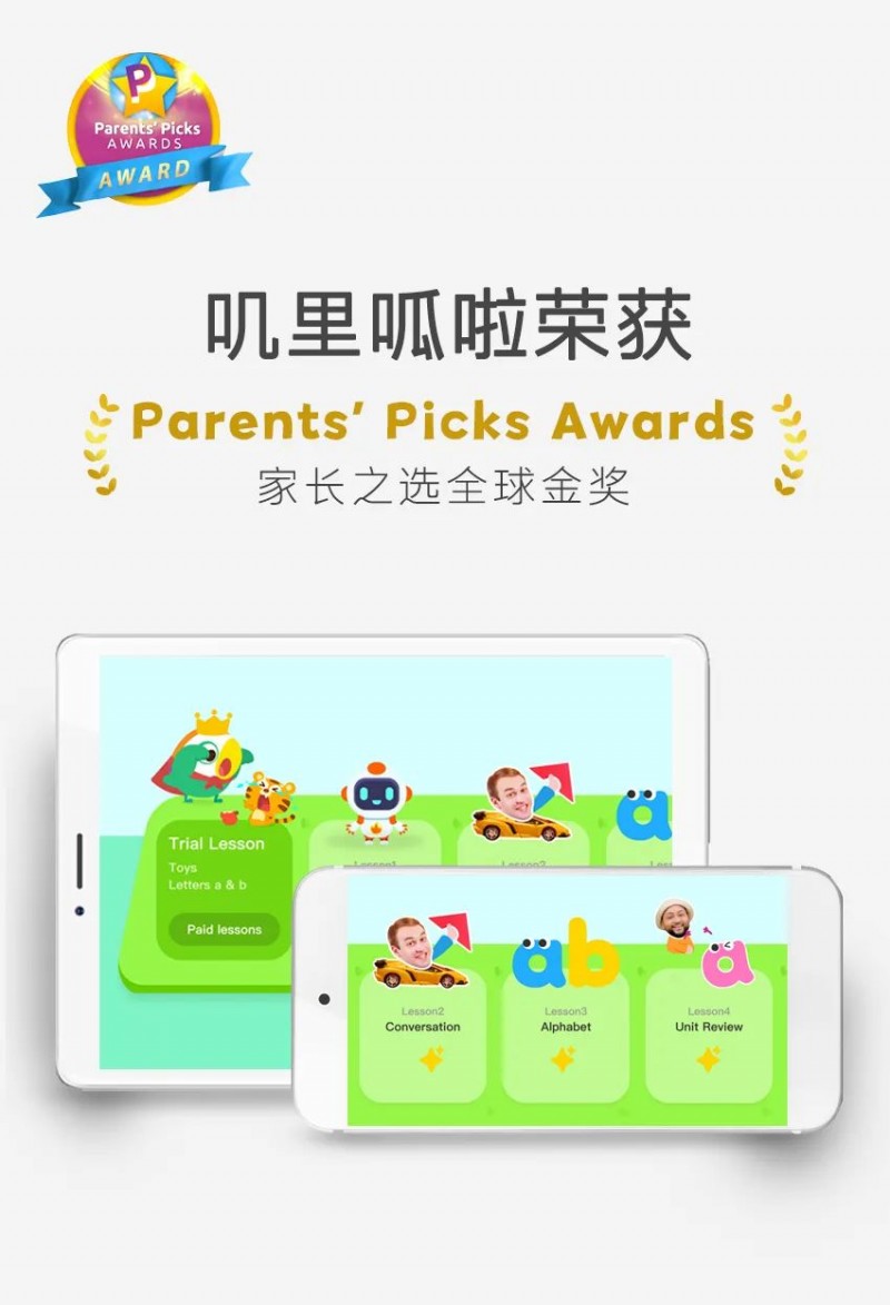 2023年10月,儿童内容品牌叽里呱啦从全球数百个儿童产品中脱颖而出,荣获Parents’ Picks Awards(家长之选全球金奖)。该奖项是国际儿童产品领域的行业标杆,旨在为家长评选出优质的儿童产品。叽里呱啦2014年成立,9年来专注儿童内容产品,精心打磨内容,全心守护孩子的未来,陪伴孩子成长。