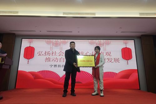 宁晋县自媒体协会荣获“2023年度对外宣传宁晋工作先进单位”,会上河北公益网总编辑张亮向宁晋县自媒体协会颁发“正能量网络文化调研基地”牌匾。