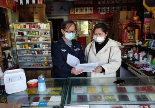 图为该局志愿者在零售户店内开展消防知识宣传