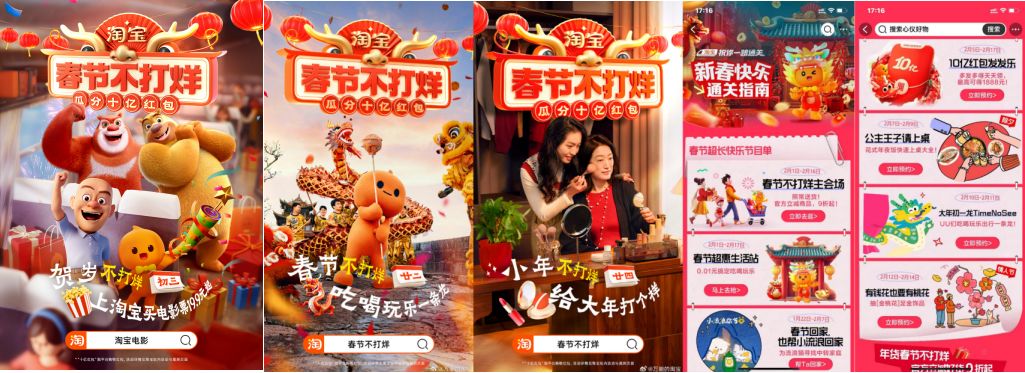 淘宝特别推出“春节超长快乐节目单”,呈现如#公主王子请上桌#、#大年初一龙TimeNoSee#、#有钱花也要有桃花#等多个创意节日特辑,提供了更多样化的“淘宝式过年”内容给到消费者,以趣味内容设置陪伴用户在淘宝度过好逛、好买、好玩、好看、好福利的龙年新春。强化了淘宝陪你过节的心智,也引领了春节消费的新风向。