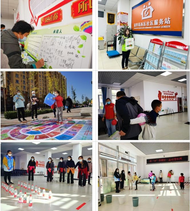 签署了承诺书,居民便获得了参加活动的资格,可以进入场地选择自己喜欢的项目玩起来了。活动现场设置了“垃圾分类做表率”“靓丽冠华西大家齐参与”“旧物也疯狂”“垃圾消消乐”“垃圾分类大富翁”等环节。活动过程中,社区居民踊跃参与各个游戏项目,在趣味游戏中学习领会垃圾分类的知识和理念,并在游戏的过程中主动交流,互帮互助,递增邻里间的情谊。