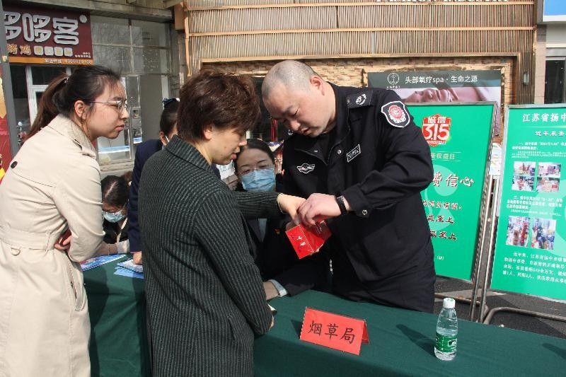图为稽查员开展我为群众辨真假3.15志愿服务活动