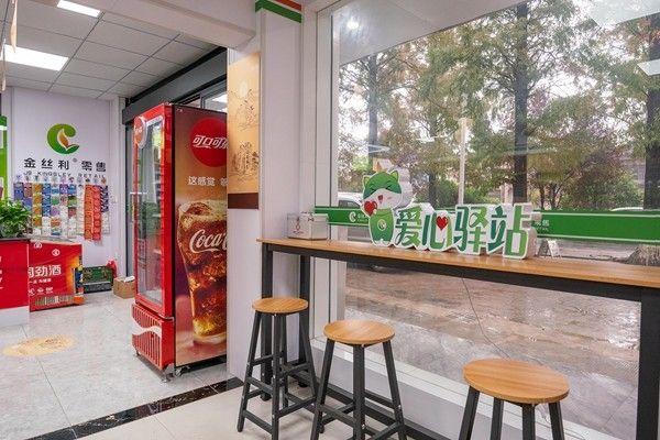 守望相助,“便民驿站”聚爱心。协助零售客户在“金丝利零售”加盟终端建立“党群服务角”“爱心驿站”“快递驿站”,把驿站作为开展志愿服务活动的常设阵地,配备桌椅、饮水机、微波炉、雨伞、便民工具箱、医药急救物品等,帮助环卫工人、快递员、外卖员、环卫员、办事群众等就近解决休息难、饮水难、吃饭难等问题,方寸之地传递温暖关爱、传播文明风尚。