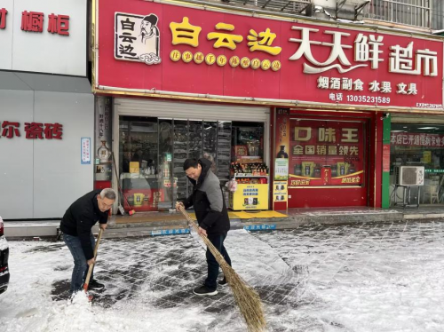 为了减少降雪给客户门店造成的安全隐患,同时营造整洁优美的市场环境,宜城烟草局组织全体党员成立志愿服务先锋队,开展“扫冰除雪”志愿服务活动,此外,为确保志愿服务活动有序开展,制定“应帮尽帮”的服务举措。志愿者们不畏严寒,相互配合,挥埽舞锹,你一铲,我一锹,破冰除雪,虽然志愿者的手、脸都被冻的通红,但这并不影响他们的服务热情。