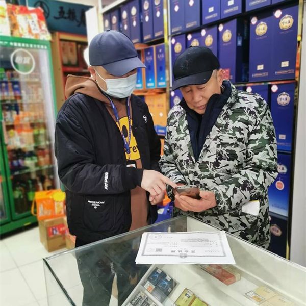 图:专卖人员上门协助行动不便的零售户办理延续手续