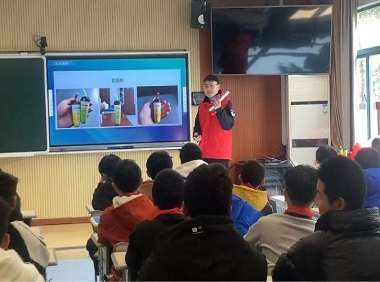 图为长兴烟草志愿者给小学生们开展电子烟防范教育课