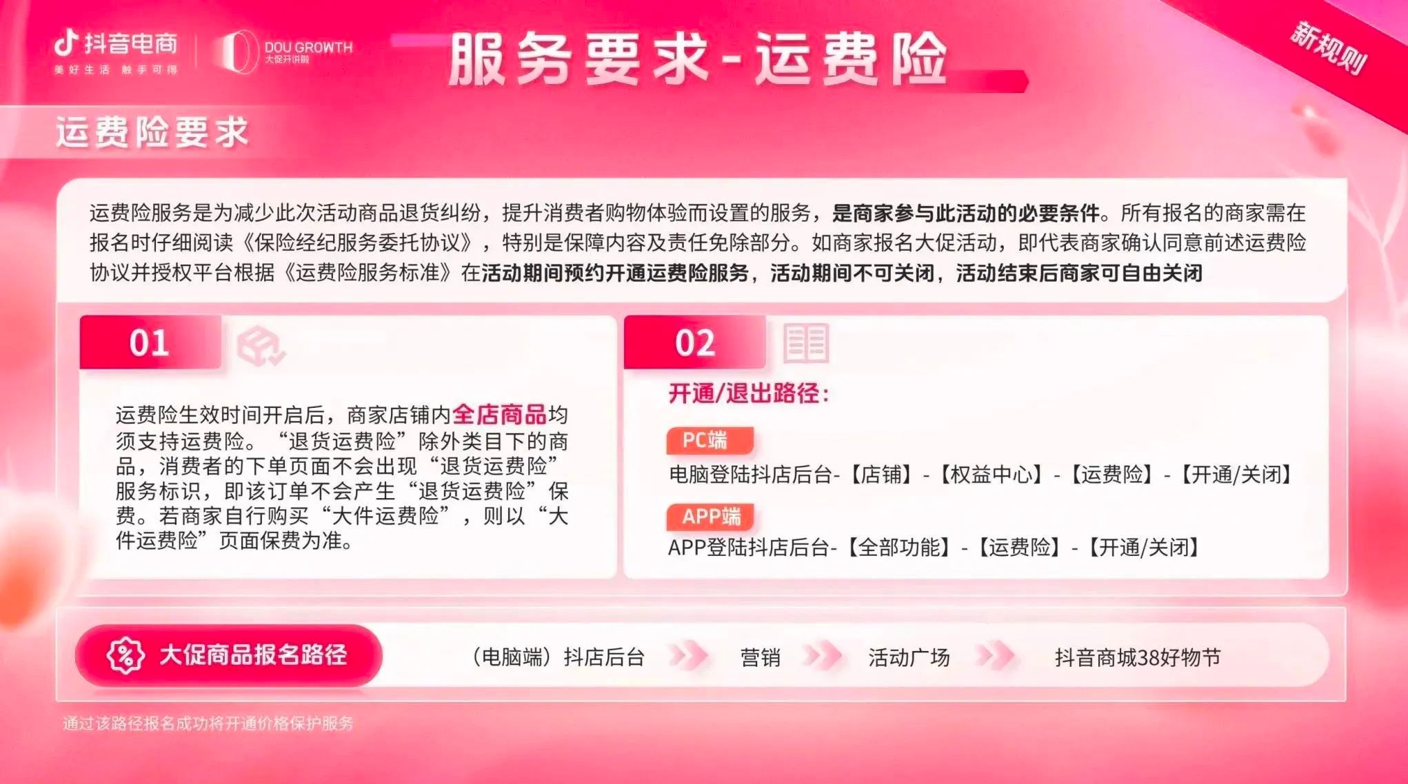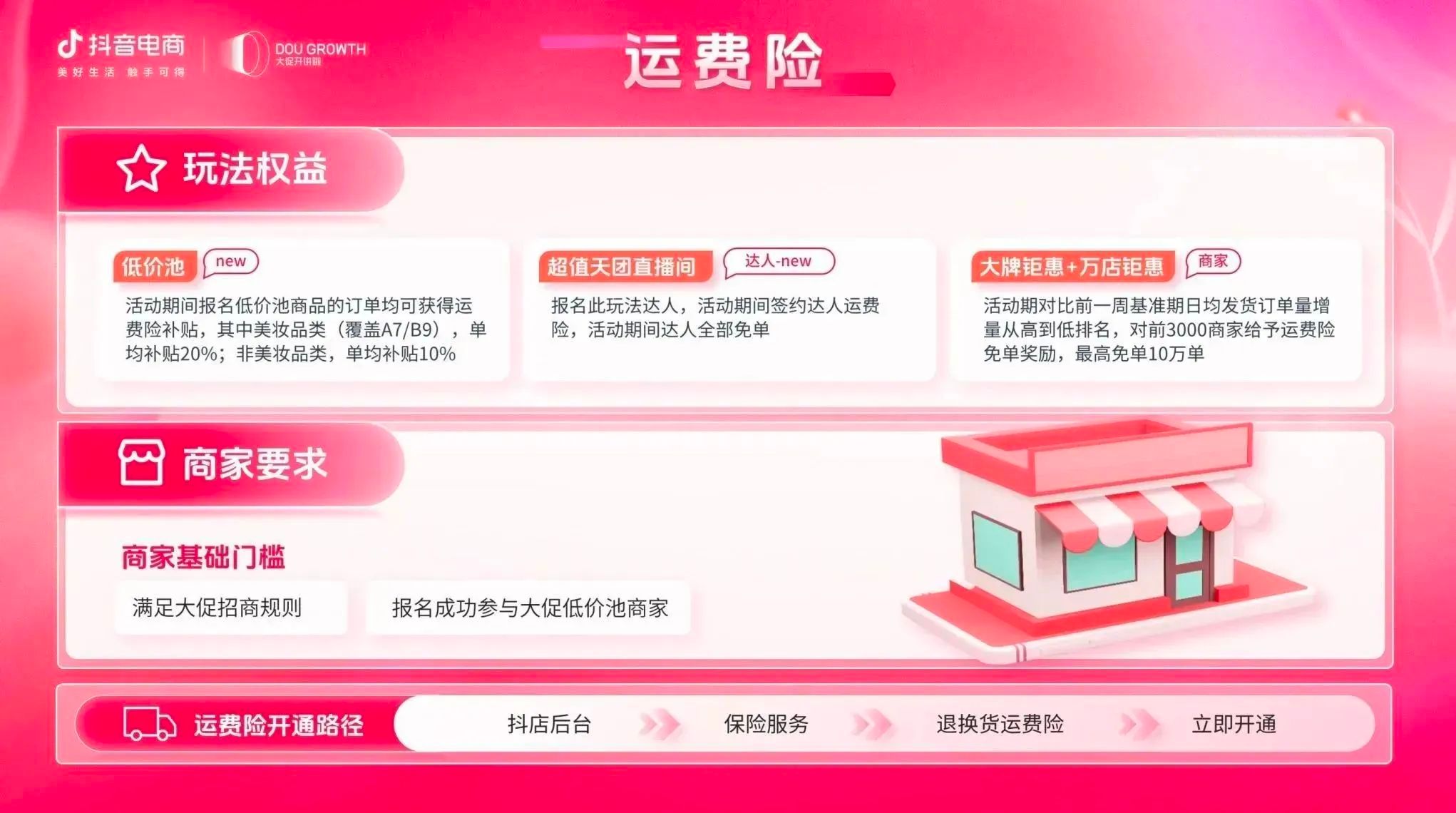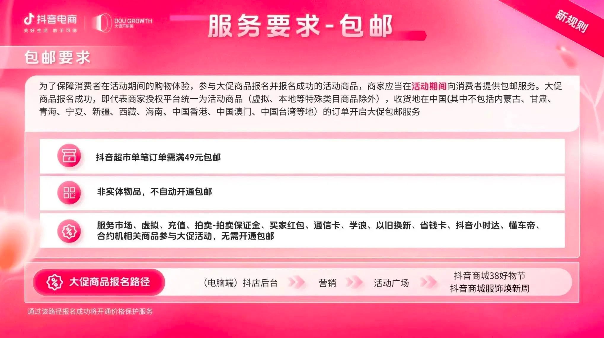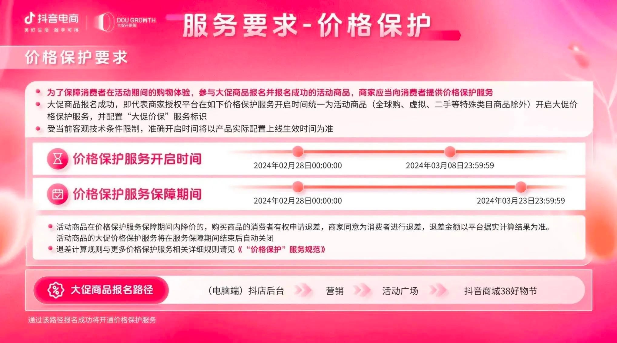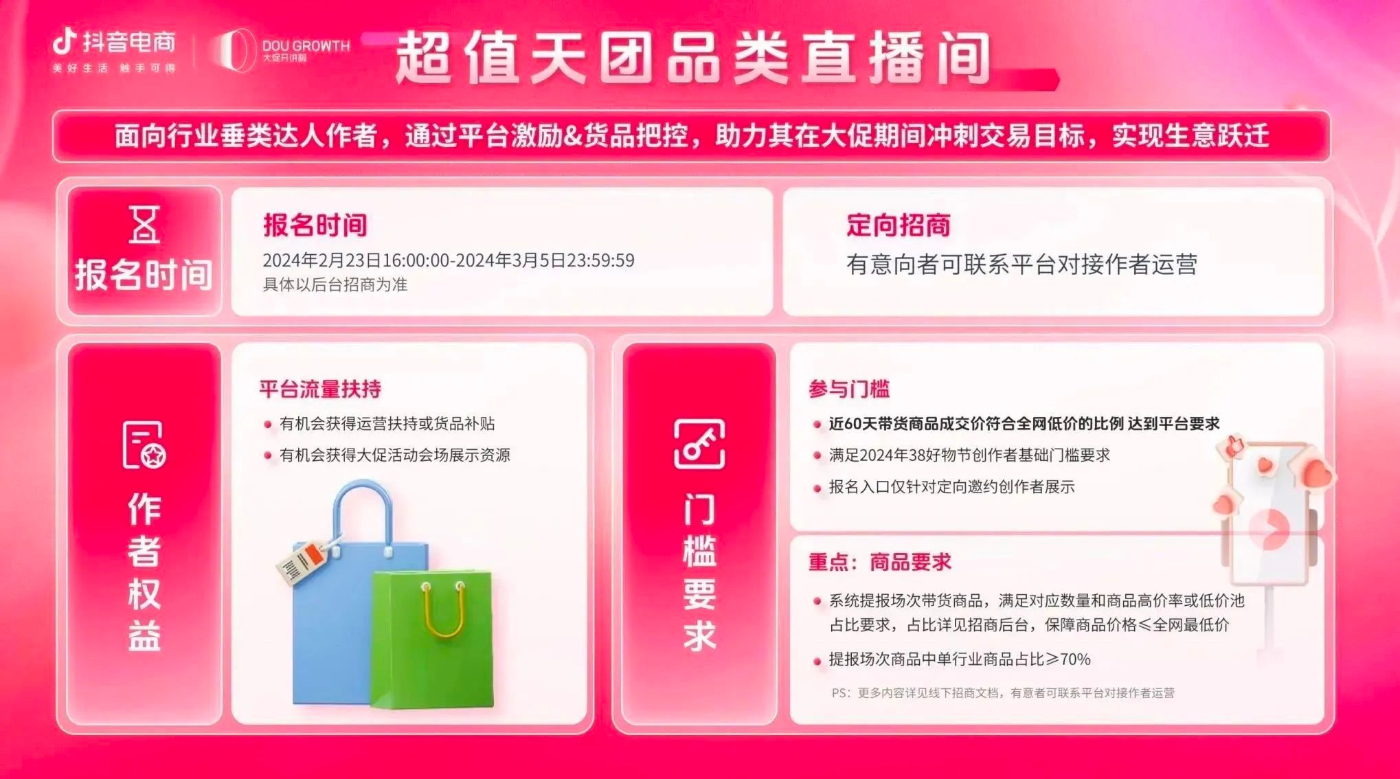 目前,抖音商城38好物节招商正在火热进行中,商家可关注微信公众号“抖音电商营销观察”获取活动报名手册,快速熟悉各项玩法,充分利用平台福利政策,获取更多高粘性精准人群,开启“她”生意新篇章。