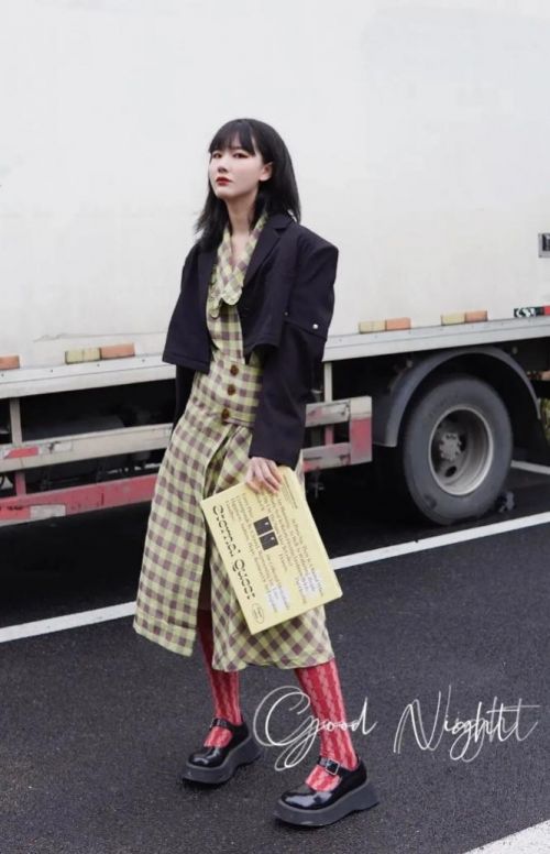 Souler@苏啊sua的穿着偏向于复古风和cityboy风格。黄绿色格子裙搭配上红色条纹袜,各自明艳却又不互相排斥。如果你问她这么特别的穿搭是如何构思的,运用到了哪些潮流美学?Souler@苏啊sua 会告诉你“多穿多尝试,舒适度就是答案啦。”