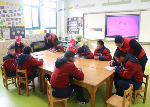 在和特校老师的沟通中,党员突击队成员了解到特殊学校的学生作为“来自星星”的孩子们,要用“来自星星”的教育方式,于是,党员突击队成员精心设计聊天内容,以孩子们感兴趣的方式参与到他们的学习、玩耍中。