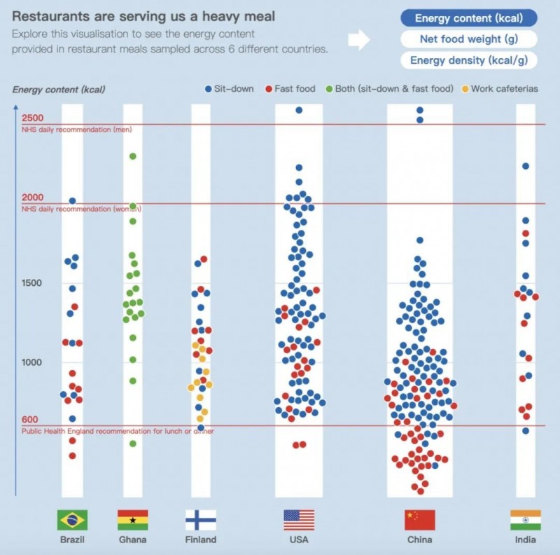一项在《英国医学杂志》上发表的研究,分析了巴西、加纳、印度、芬兰、美国和中国等六个国家的27家连锁餐厅。各国菜肴风味各具特色,营养各有优劣。